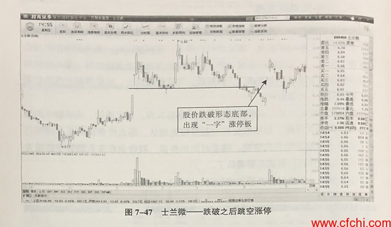 士兰微——跌破之后跳空涨停,如图7-47所示。