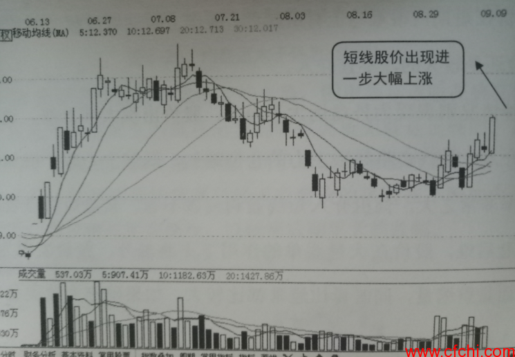 如图2所示是该股接下来的K线走势,图中显示该股当天之后出现大幅上涨,短线受益非常可观,可见在发现该股受到大资金关注时伺机跟进是正确的。