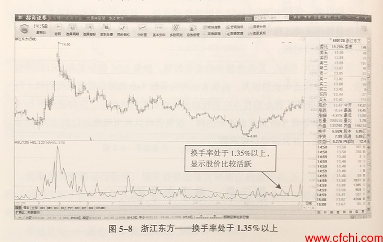 浙江东方—换手率处于1.35%以上,如图5-8所示。