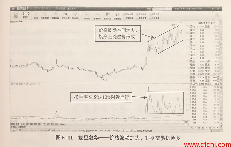 复旦复华——价格波动加大,T+0交易机会多,如图5-11所示。