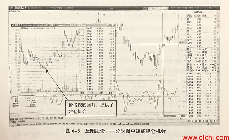 圣阳股份——分时图中短线建仓机会,如图6-3所示。