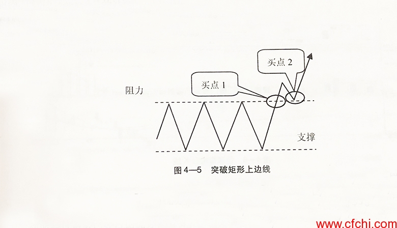 如图4-5所示,这种走势即突破矩形上边线形态。