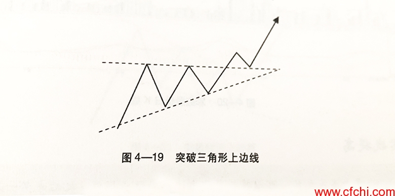 如图4-19所示,这种走势即突破三角形上边线形态。
