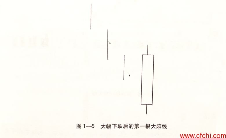 如图1-5所示,该形态即大幅下跌后的第一根大阳线。