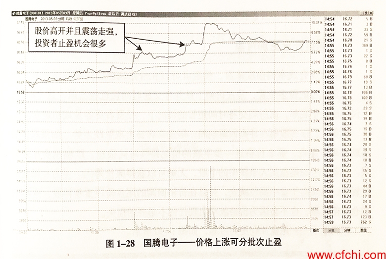 国腾电子——价格上涨可分批次止盈,如图1-28所示。