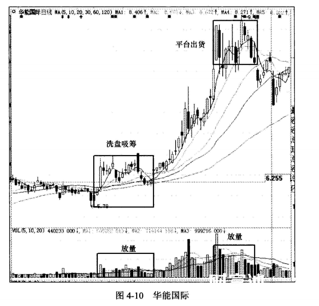量增价平的现象也会发生在多头行情的洗盘阶段,体现在K线形态上则是平台洗盘,有时主力资金会采取此办法做出多个平台。而当量增价平的现象出现在多头末升段时,则暗示主力积极出货,注意股价出现多空反转信号。