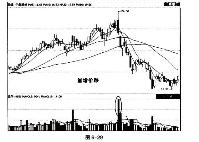 因此,持股人在看到下跌初期与中期的“量增价跌”后,效率最高的止损方法就是斩仓,最好不要通过在下跌中买入的方法来减少平均成本,这只会让你越陷越深。