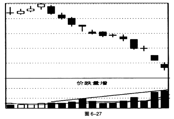 为什么我说“量增价跌,弃卖观望”?因为股价经过长期大幅下跌之后,出现成交量增加,即使股价仍在下落,也要慎重对待极度恐慌的“跌”,所以此阶段的操作原则是放弃或卖出股票,空仓观望。