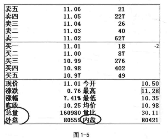 总量和现量的含义较容易理解,那么什么是内盘和外盘呢?