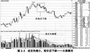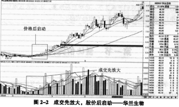 2006年3月,华兰生物成交先行放大,股价之后才启动上涨行情(见图2006年6月,大族激光成交量已经明显萎缩,而股价在之后的7月份才开始下跌(见图2-3)。