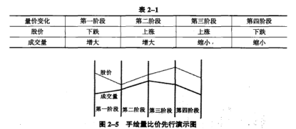从以上不难看出,股价和成交量的关系呈现出成交量先变化而后才是股价发生变化,即量比价先行。其实,我们经过研究发现,一个完整的波段的量价关系,应该如表2-1所示。
