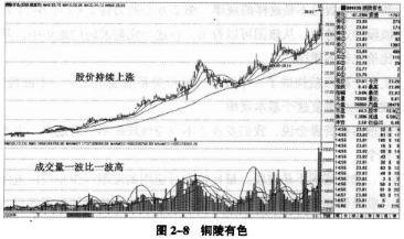 铜陵有色的成交量一波比一波高,则股价持续稳步上扬。越是相对温和地放大,股价持续越久。突然的暴量,容易使行情加速、完结或停滞。