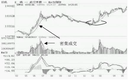 同时,也存在分时走势和K线图中密集成交上的差异性。分时走势上的密集成交可能反映到K线图上,并不一定就会出现较大的量柱,K线图中未必处于密集成交的态势。