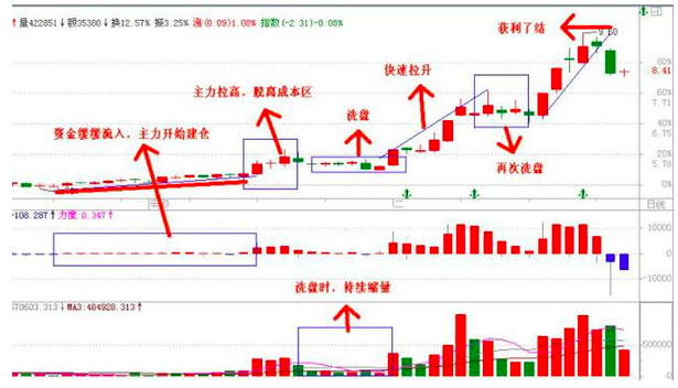 因为是底部介入的,所以投资者不必担心股价上升过程中的回档,可以大胆地持仓将股票持有到主力在最后的快速拉升时派发。当然,如果你能波段操作的话,还可以在这一上升的过程中采取高抛低吸的手法来回避回调的风险,从而进一步提高自己的收益。