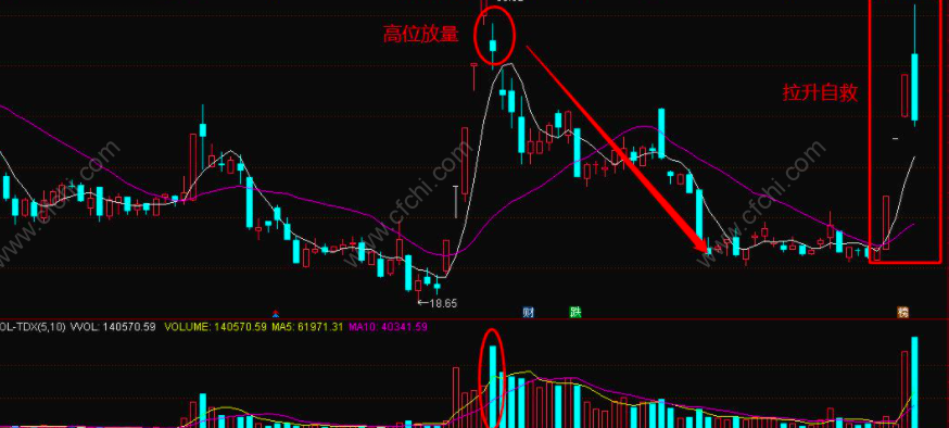 高位放量,通常具有两种情况:一种就是主力想出货。主力经过一波拉升,已经达到了目标点位,接下来它就会把筹码兑现。为此,主力会想尽各种办法,引诱散户,包括借助媒体进行宣传,让有关专家写文章推荐等。