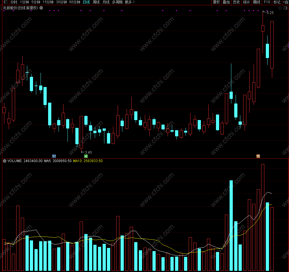 这种情况- -般是没有突发利好或大局基本稳定的前提下,“妖庄” 所为,风平浪静时突然放出历史巨量,随后又没了后音,一般是实力不强的庄家在吸引市场关注,以便出货。