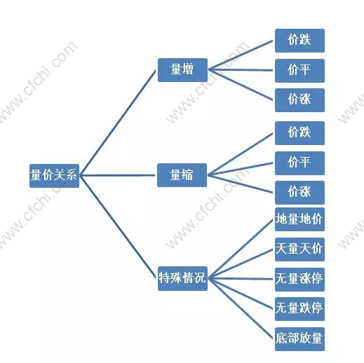 成交量形态包含:缩量、放量、堆量、天量、不规则型的放大缩小,量价关系可以分为六种形式:量增价跌、量增价平、量增价涨、量缩价跌、量缩价平、量缩价涨;此外还有几种特殊情况:无量涨停,无量跌停,底部放量、地量地价、天量天价等,这里不做过多阐述。