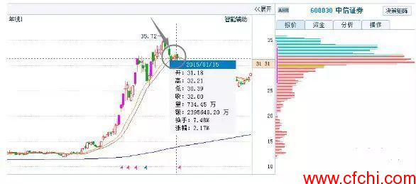 筹码分布也可以看到主力是如何拉升、如何出货、以及如何低位建仓的,今天就用中信证券给大家演示下: