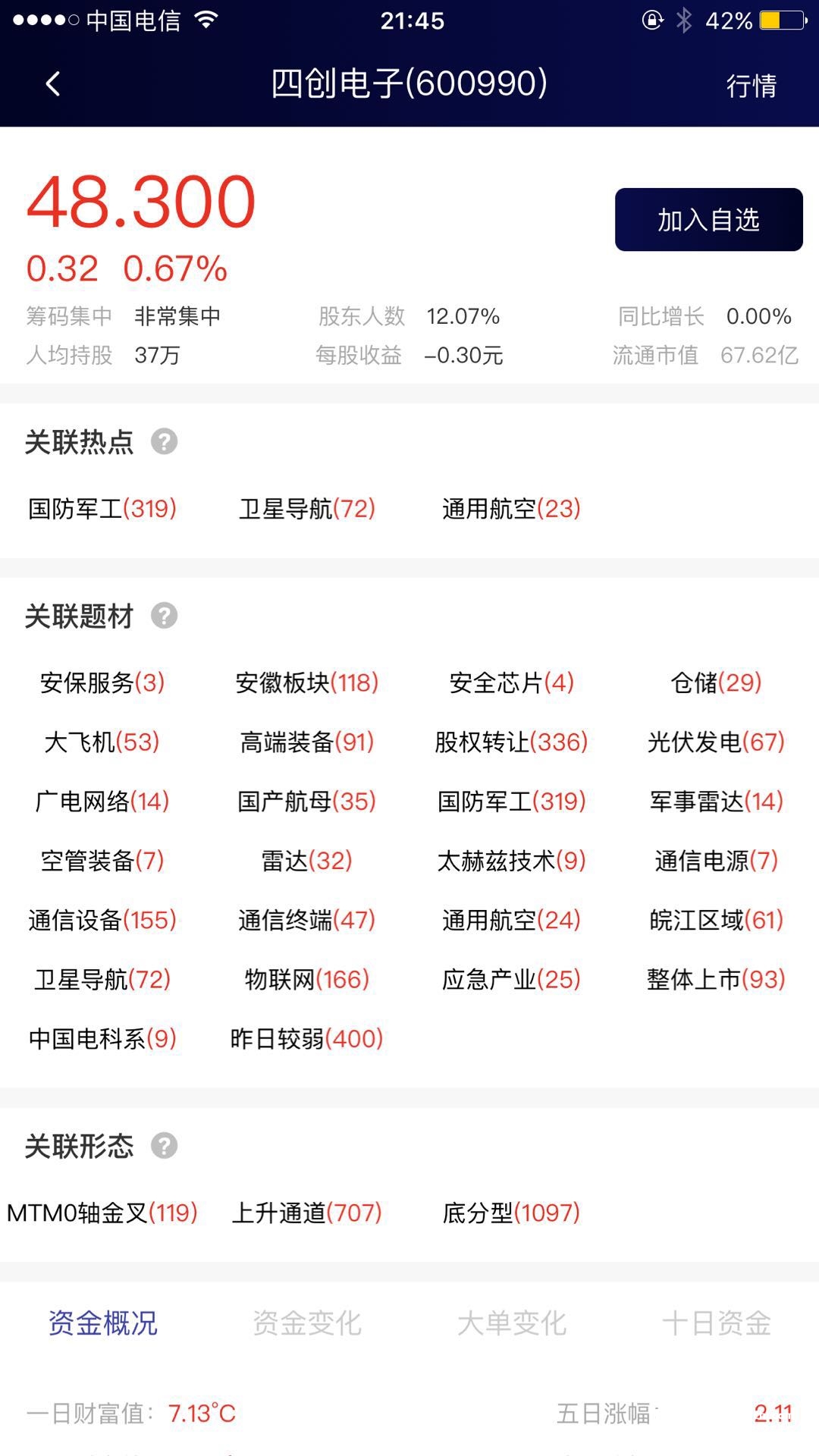 (1)打开财富池PC版操盘系统,调出四创电子个股数据: