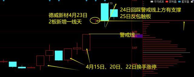 4月15日、20日、22日都曾放量换手涨停,可以说是在新增一线天之前完成了筑基,