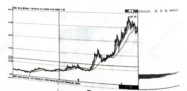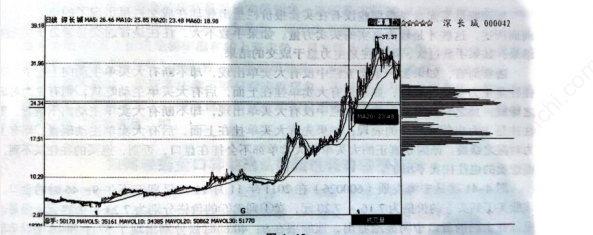 5、股价回落到第一次密集峰处形成第二次峰密集。