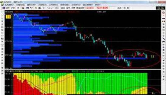 市场在这段下降过程中跌幅达70%多,经过了巨大的跌幅之后,在图2中c的位置,形成了一个巨大的静态筹码。同时,K线的运行也走出了一个底部抬高,顶部被打破的上升格局。其实这些条件都是一些最基本的要素,真正的最后决定性的条件就是六彩神龙的红色筹码能否超过25的位置。