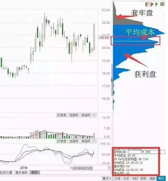 (2)图中右下角分别标出了套牢盘和获利盘的比例。