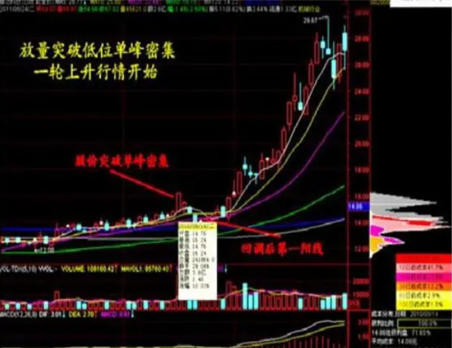 第一形态:放量突破低位单峰密集——一轮上升行情开始