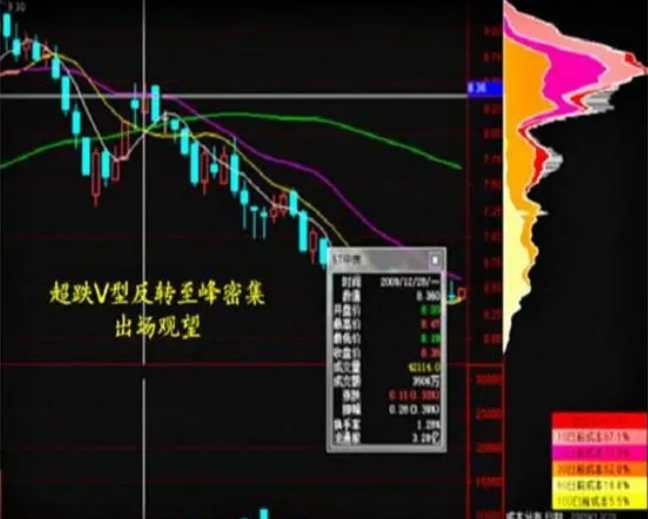 操盘要点:超跌V型反转确认后即时跟进,股价反弹至原单峰密集区域是出厂观望。