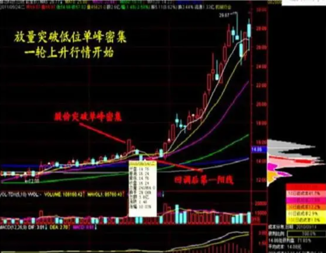 第一形态:放量突破低位单峰密集——一轮上升行情开始