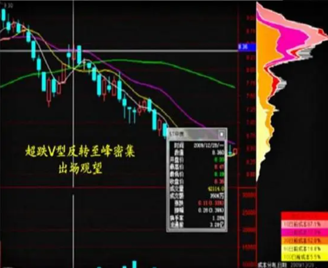 操盘要点:超跌V型反转确认后即时跟进,股价反弹至原单峰密集区域是出厂观望。