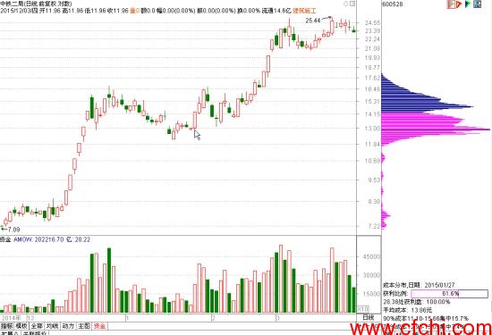 如图所示,这是中铁二局(600528)2014年12月至2015年3月的日线图。