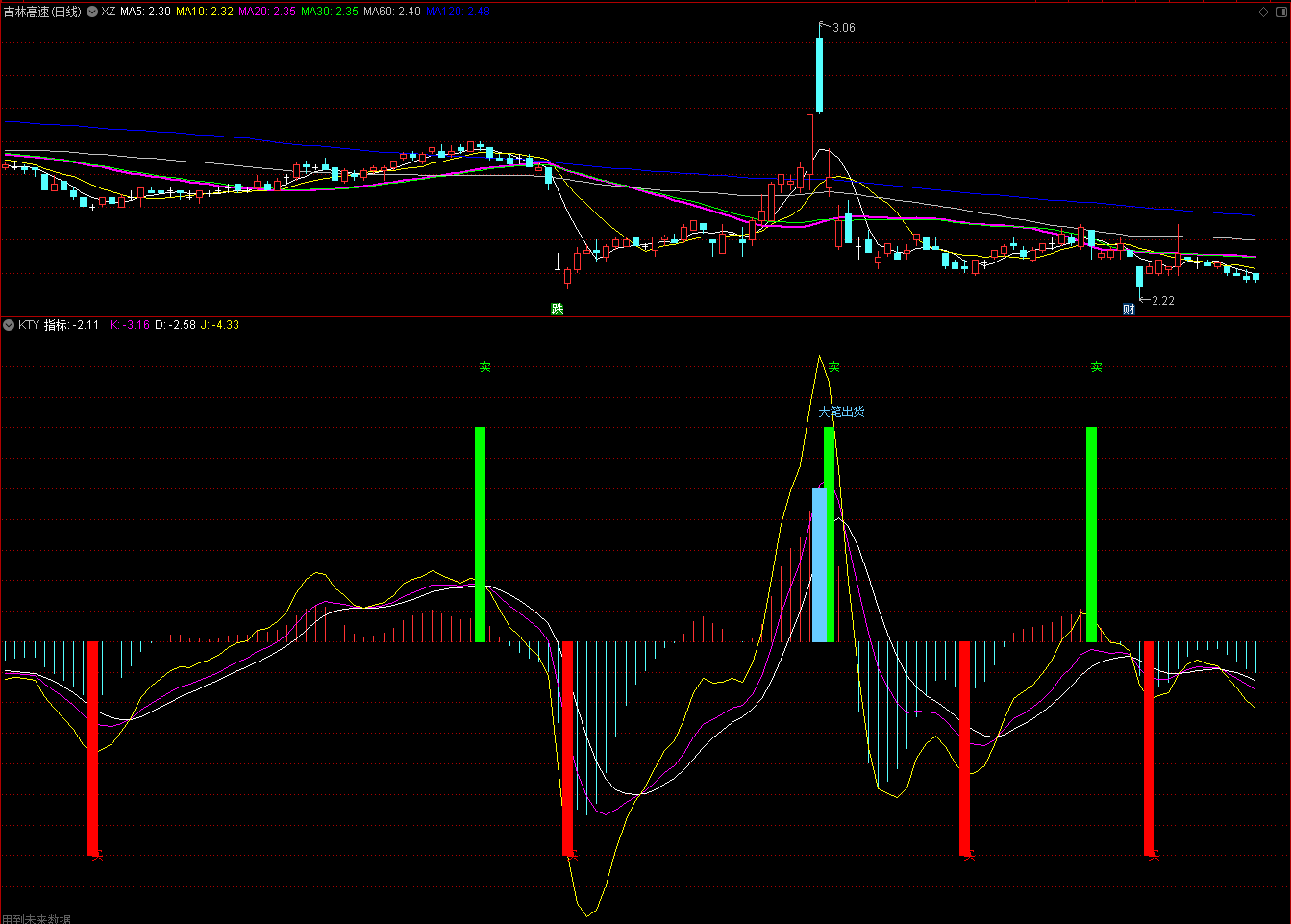 1、绿色柱状表示个股处于短线弱势,红色柱状表示个股处于短线选股强势股,出现异常彩色柱时,显示个股处于一种短线超强非理性状态;