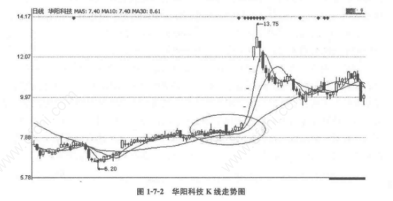沉寂许久的农药化肥板块突然上涨,其中利尔化学(002258) (如图1-7-1)、华阳科技(600532) (如图1-7-2)、沙隆达A (000553) 更是大涨。