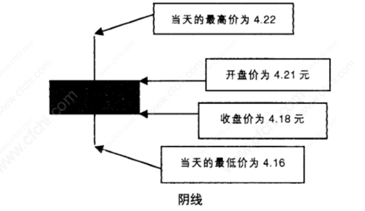 以2010年12月22日工商银行的行情图为例,当日该股票是下跌行情,跌幅为0.48%。图形为阴线,如下图所示: