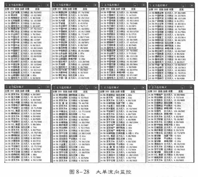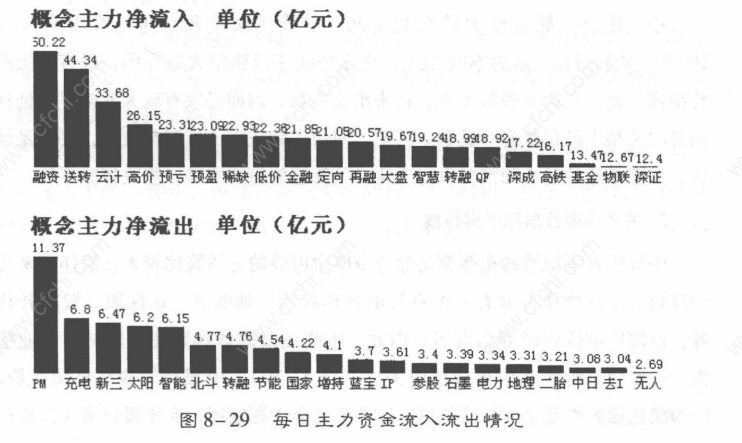 热点转移往往伴随着主力资金的流向的转移,所以投资者要密切关注大单动向(图8-28)和每日主力资金的流入和流出情况(图8-29)。