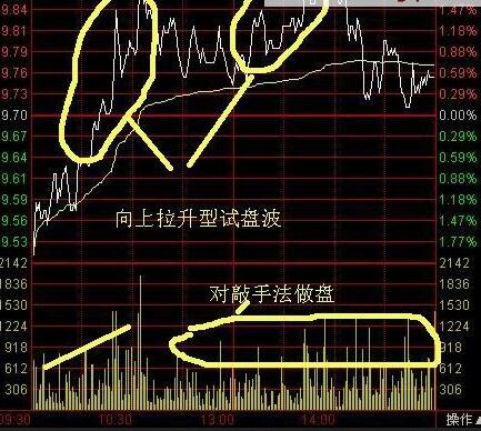 (1)试盘波——指分时走势图中股价在平衡整理状态下突然出现剧烈波动,或者瞬间出现剧烈波动,之后迅速恢复平静,这种分时走势产生的波形叫试盘波。