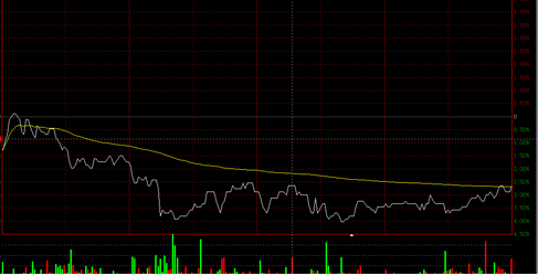 下面是实际的一个股分时图,我们可以从这个图当中找到分析走势强弱的方法,首先说这个图反应的是分时走势图与前收盘价的位置关系。这是短线看盘的时候需要重点留意的核心环节之一,是我们判断当天走势强弱的主要途径之一。