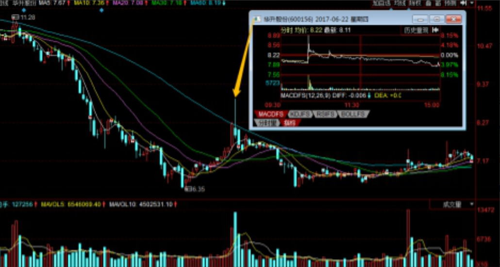 5、从近涨停位置快速跳水,典型的出货(股票)。最狠的一招是在涨停板下方位置的横盘,引诱散户入场高位接盘,然后自己暗中出货 。