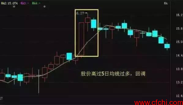 (1)股价离开5日线过远、高于5日线过多,也即“五日乖离率”太大,则属于短线卖出时机。乖离率多大可以卖出,视个股强弱、大小有所不同,一般股价高于5日线百分之七到十五,属于偏高,适宜卖出。若是熊市,一般股价低于5日线百分之七到十五,适宜短线买进。