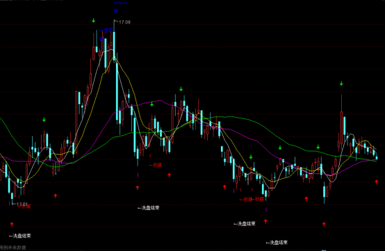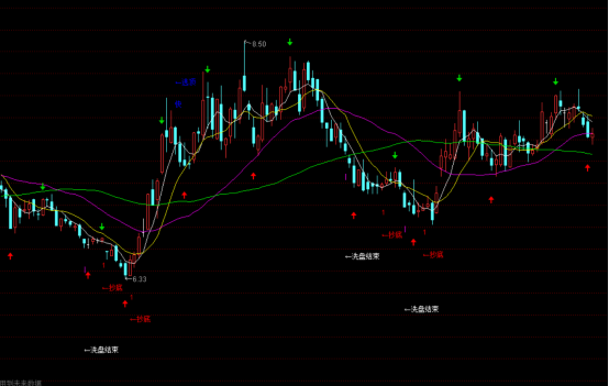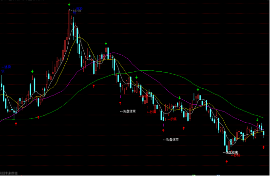 主图指标中已标注出洗盘结束之后抄底和逃顶信号,以及红箭头所指就是最佳买入股票时机,绿色就代表股价会下跌,要考虑卖出股票!