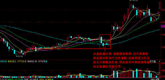3、恐慌性。主力压时往往力度很大,一般是长阴线伴随着巨大的成交量,特意制造恐怖气氛。出现长阴之后能迅速企稳,可确认为主力刻意洗盘。