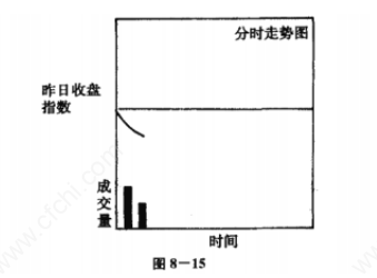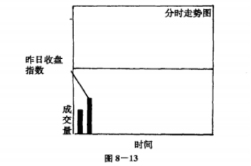 2.如图8-13,当日,主力为了测试该日的卖压,利用开盘时抛出一笔筹码,将股价压了下来。如果随后出现的下跌超过主力预期幅度且成交量放大,则说明当日卖压重,散户不因价跌而惜售。如果主力看好后市,已吸了些筹码,则当日或继续收集或洗盘,或被动护盘,不适合拉拾;如果主力不看好后市,可能先拉高,然后出脱手中持股,到尾盘反手做空。