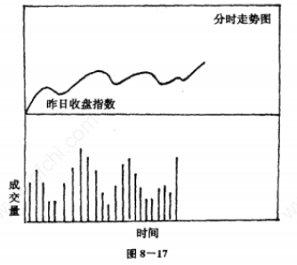 6.如图8-17,主力通过盘中价量关系分析测知散户不杀跌而追涨的心理,盘中价涨量增,价跌量缩,且全日维持在前一交易8收盘价之上,明显属强势盘。有鉴于此,主力在后市中往往发起强力攻击,以急拉做收尾盘轧死短空,以刺激明日买气。