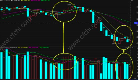 这种情况通常表明大部分筹码已落人庄家囊中:当大势向下,有浮筹砸盘,庄家便用巨资托住,封死下跌空间,以防廉价筹码被人抢了去;大势向上或企稳,有游资抢盘,但庄家由于种种原因此时仍不想发动行情,于是便有凶狠的砸盘出现,封住股价的上涨空间,不让短线热钱打乱炒作计划。股票的K线形态就横向盘整,或沿均线小幅震荡盘升。
