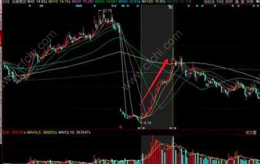 典型的如长江投资(600119), 某年7月开始,股价进入高位箱体内整理,9月15日长阳突破箱顶,“价涨量增”,第二天继续拉出长阳,但强势并未能持续多久,第三天即冲高回落,同时放出巨大的成交量,跳水动作开始,短短两个月股价即被腰斩。投资者一旦发现为假突破,宜及时止损。