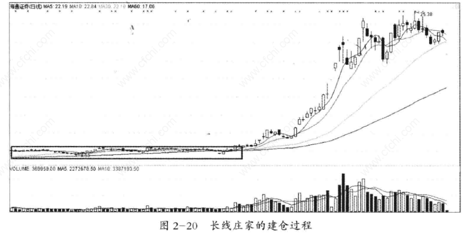 长线庄家往往看重的是上市公司的业绩,是以投资者的心态入市的。由于长线庄家资金实力强、底气足、操作时间长,因此在盘面走势形态上才能够清楚地看出其吃货、洗盘、拉高、出货的过程。所谓的“黑马”一般都是从长庄股票中产生的。