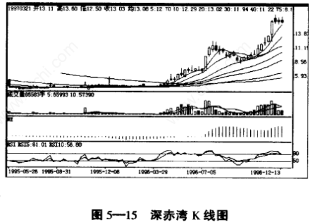 我们可参考1995年7月至1996年4月的深赤湾和深科技走势图。