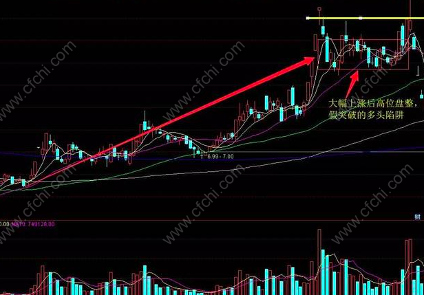多头陷阱在形态分析上,常常会故意形成技术形态的突破,让投资者误认为后市上涨空间巨大,而纷纷追涨买入股票,从而使庄家可以在高位派发大量的获利筹码。