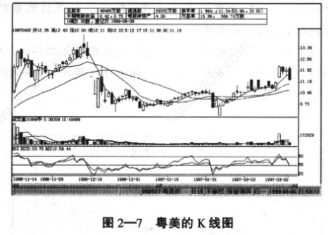 所以,若不是有实质性利好,只是大市反弹,明智的做法是出货而不追涨,如果要追(因为弄不懂是反弹还是转势),也不要追反弹力弱的个股。可参考深中冠、粤美的和前面讲过的粤金曼三幅图。